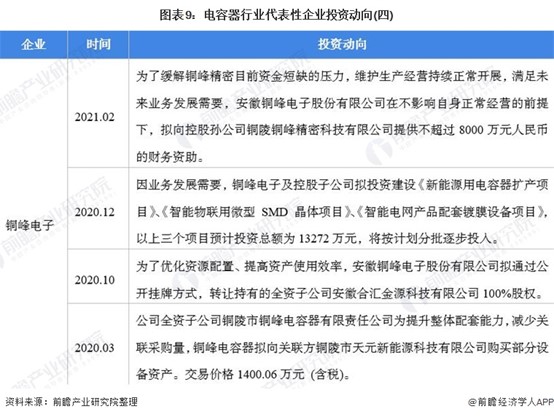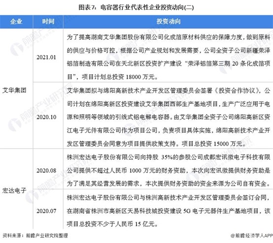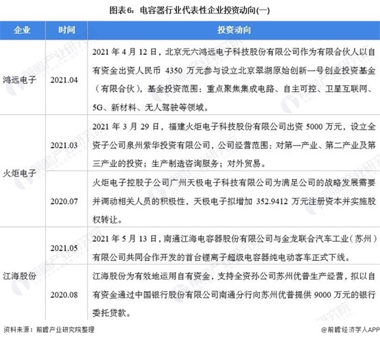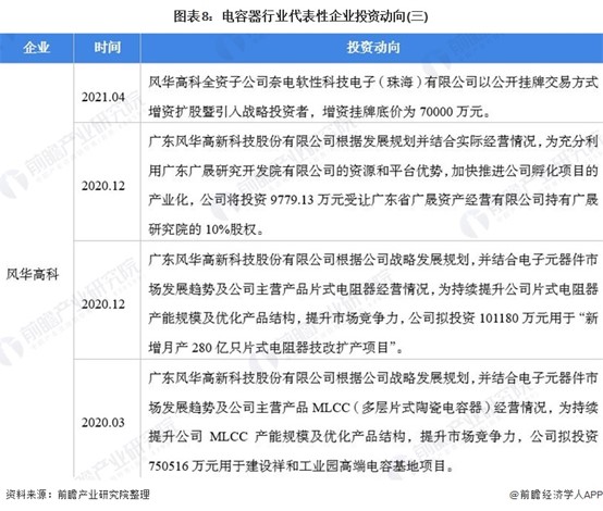 电容器行业代表性企业最新投资动向
